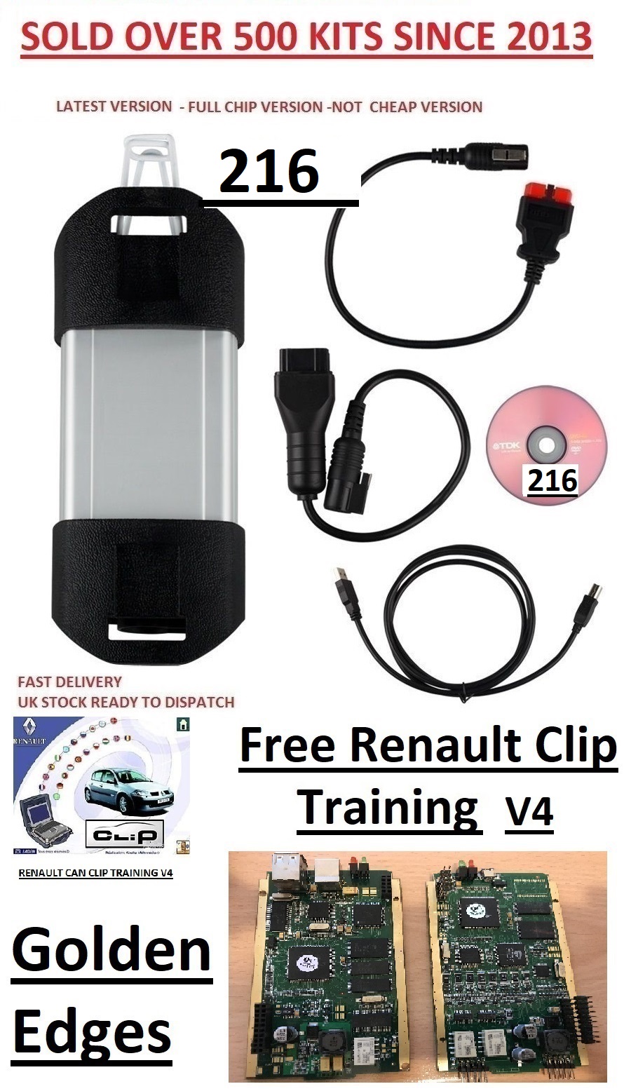 LATEST FULL CHIP Renault CAN Clip V216 Interface + Reprog V191 + Pin Extractor both on disc